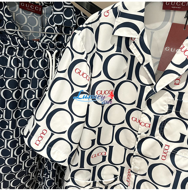 GUCCI-787216 9059 구찌 화이트/블루 맥시 구찌 프린트 쇼츠 남성용 가격 : 150,000원