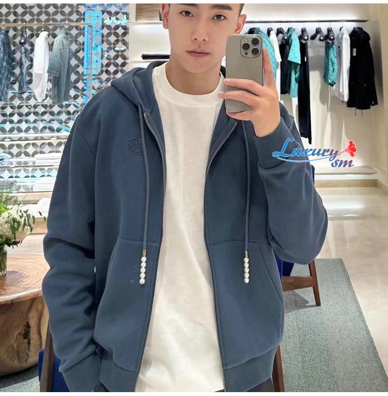 LOUIS VUITTON-1AFRB2 루이비통 네이비 엠브로이더드 저지 집 스루 후디 남여공용