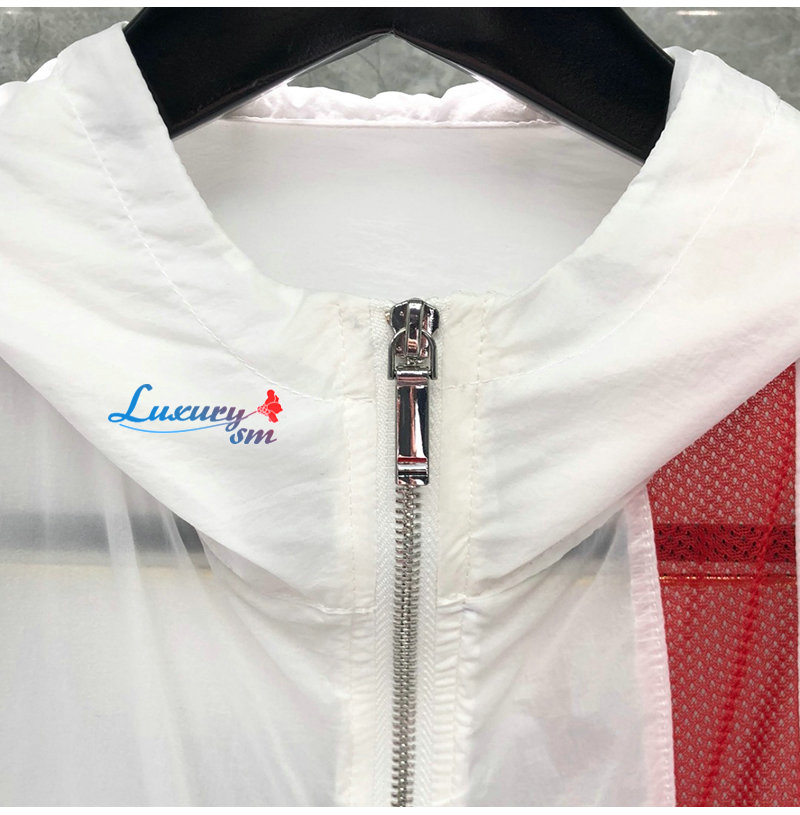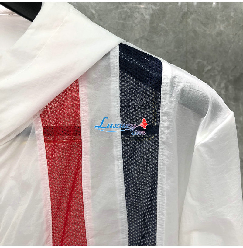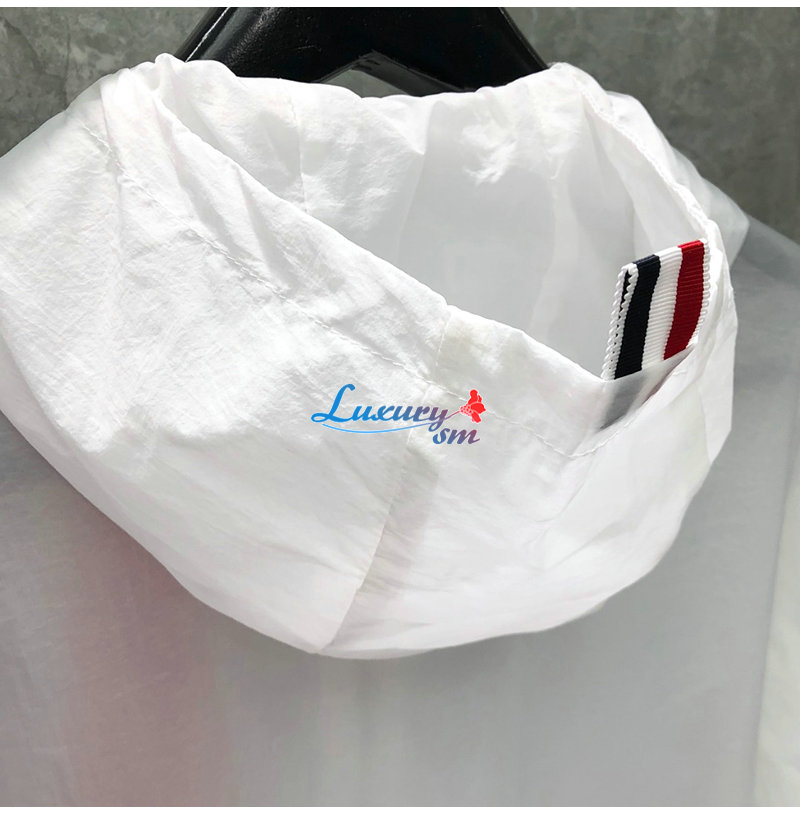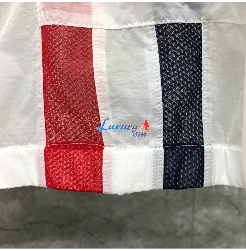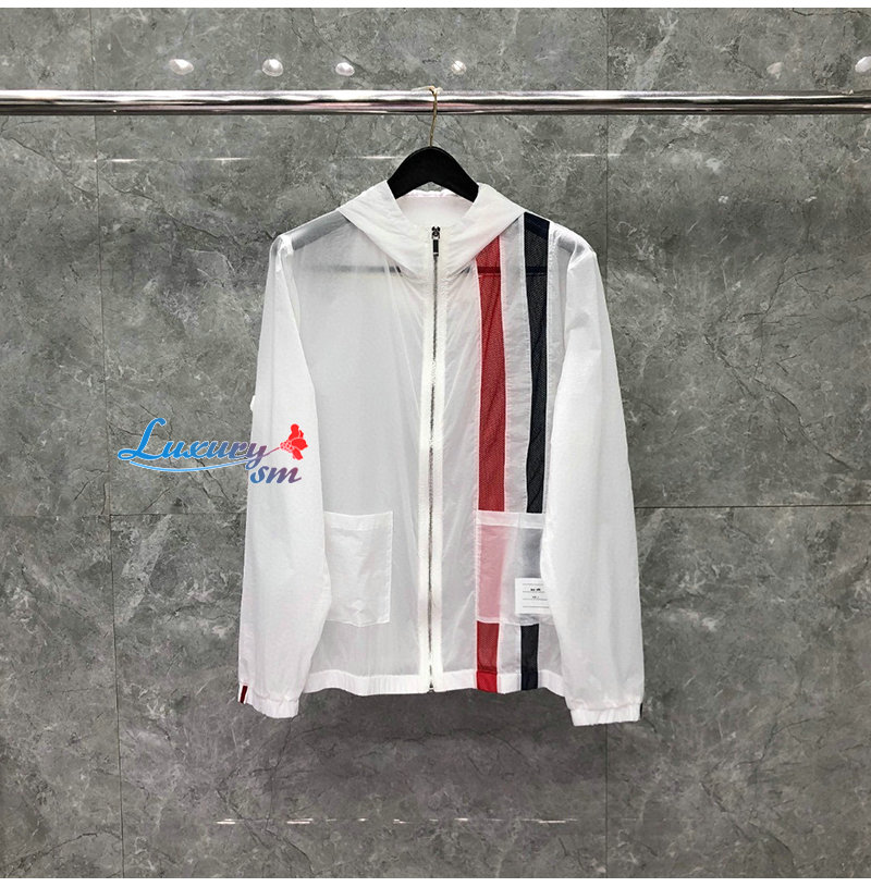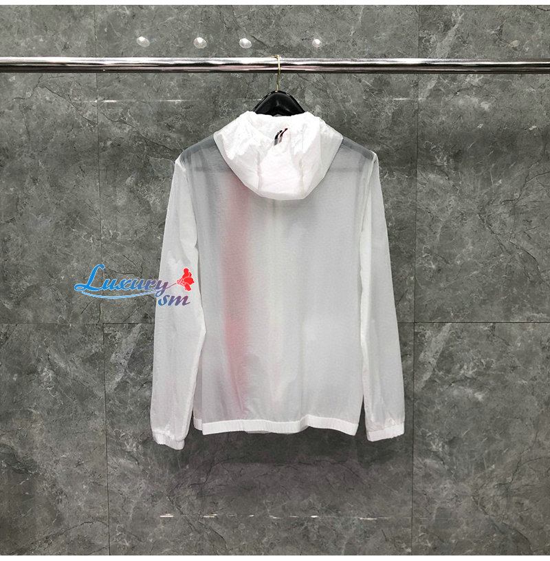 THOM BROWNE-081114 톰 브라운 화이트 스트라이프 장식 바람막이 후드 재킷 남성용
