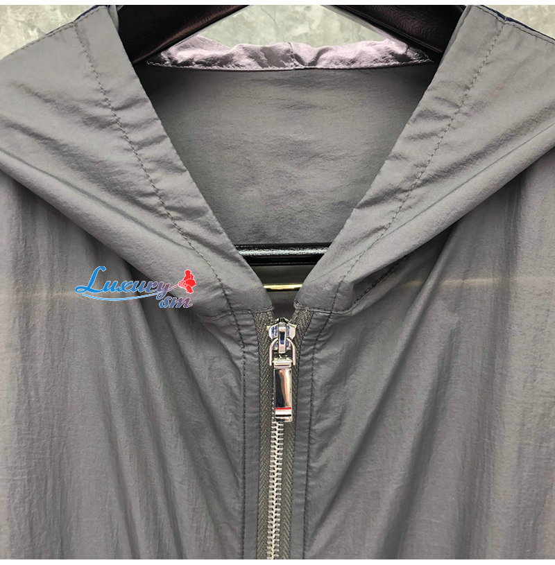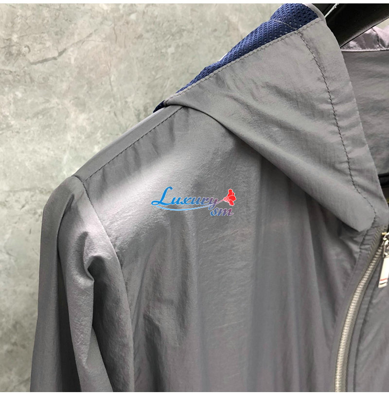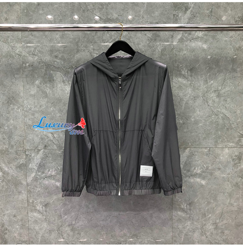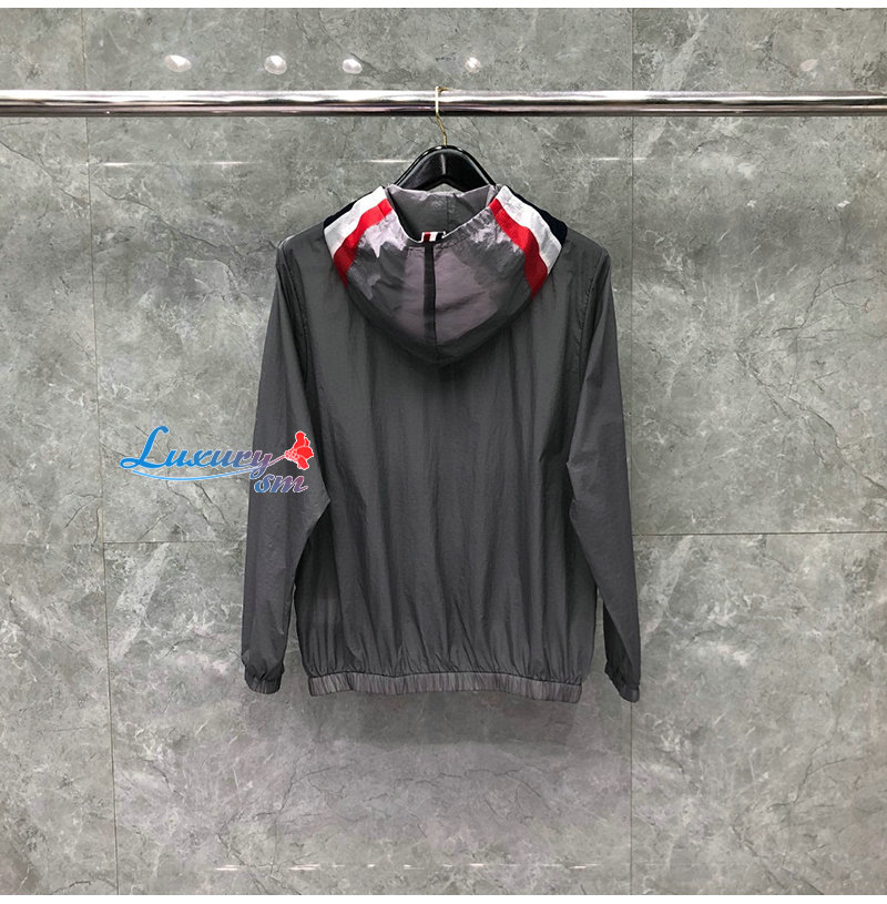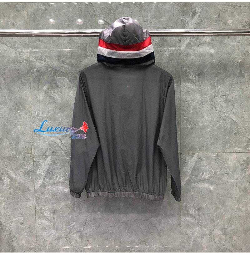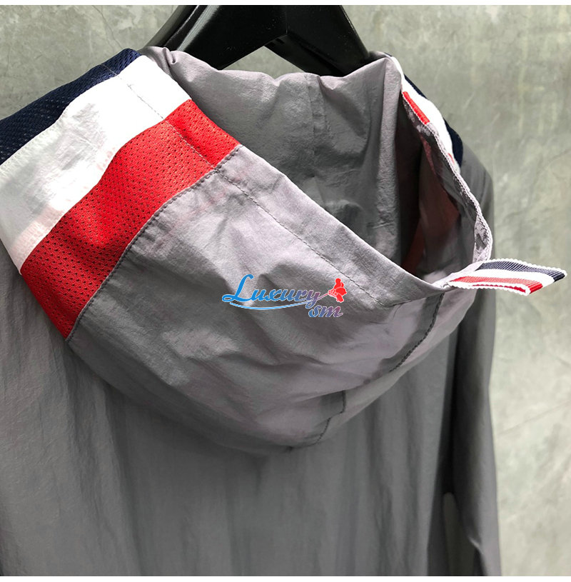 THOM BROWNE-081115 톰 브라운 다크 그레이 나일론 바람막이 후드 재킷 남성용