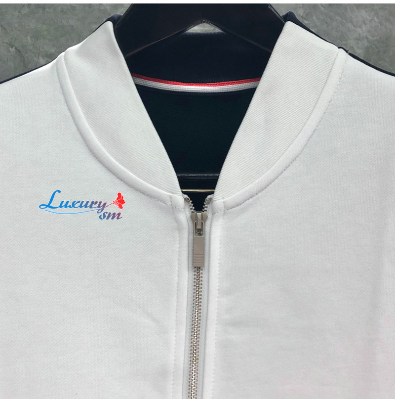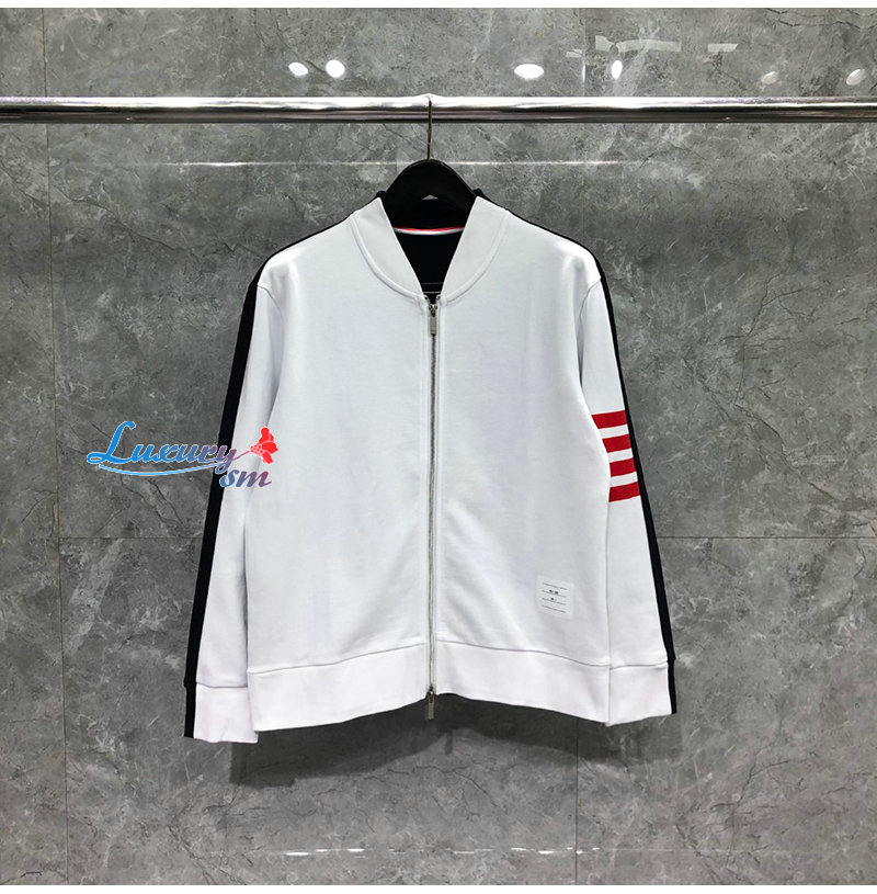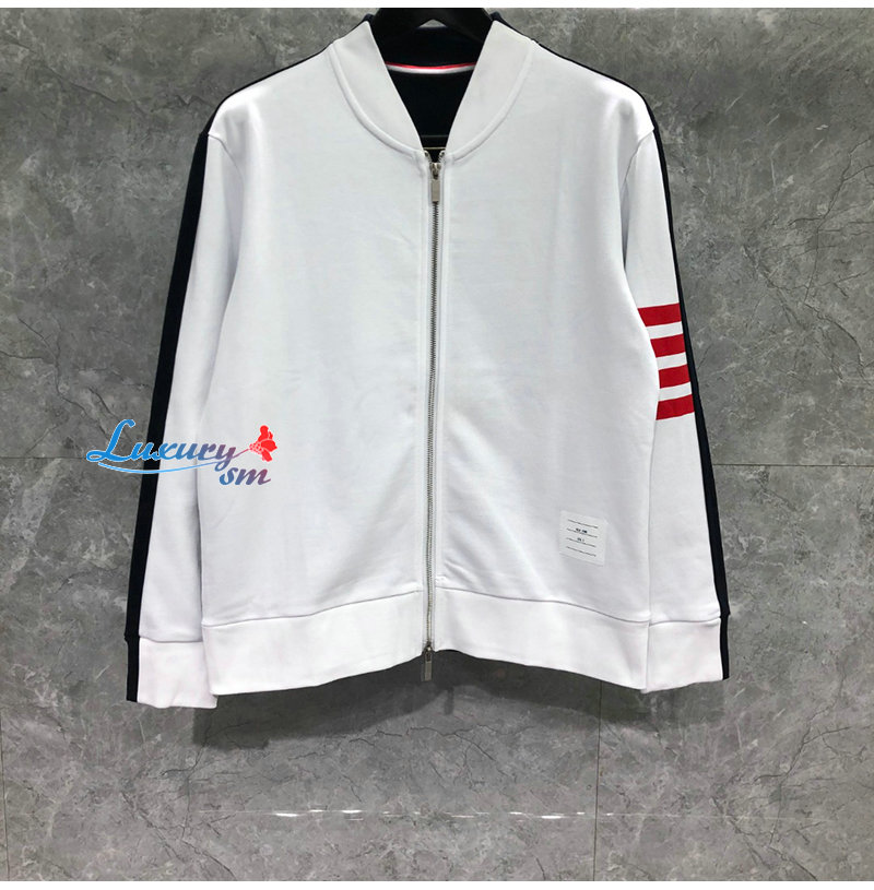 THOM BROWNE-08201 톰 브라운 화이트 스트라이프 장식 스웨트 재킷 남성용