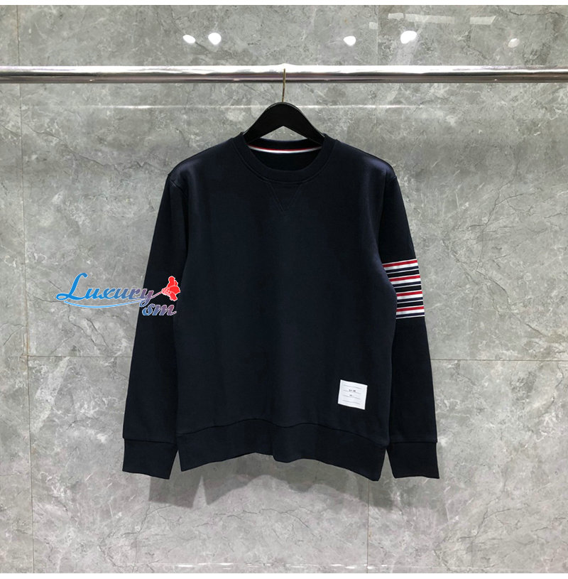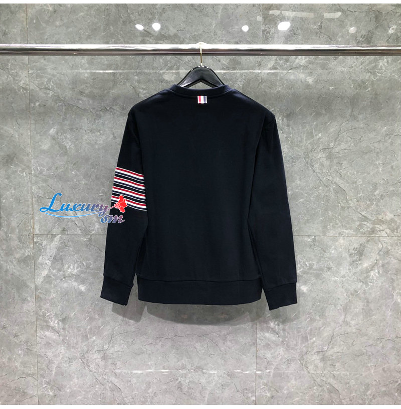 THOM BROWNE-08204 톰 브라운 네이비 스트라이프 장식 스웨트셔츠 남성용