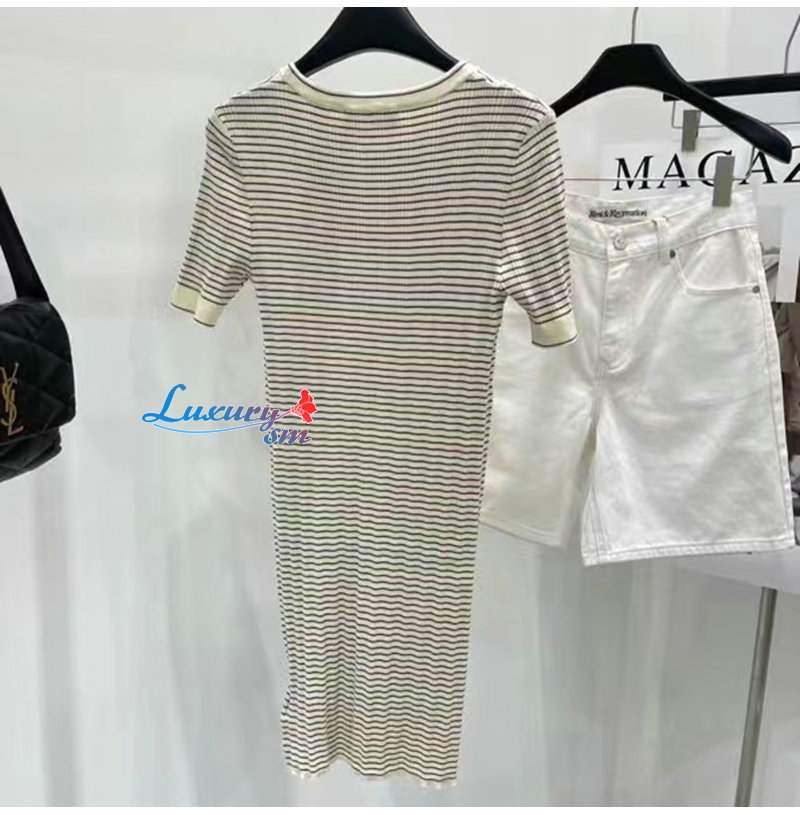 MIUMIU-05121 미우미우 화이트 니트 코튼 스트라이프 원피스