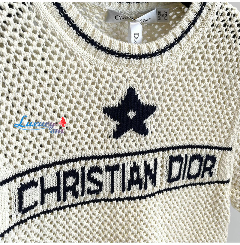 DIOR-154S09 디올 에크루 울 캐시미어 니트 티셔츠 여성용