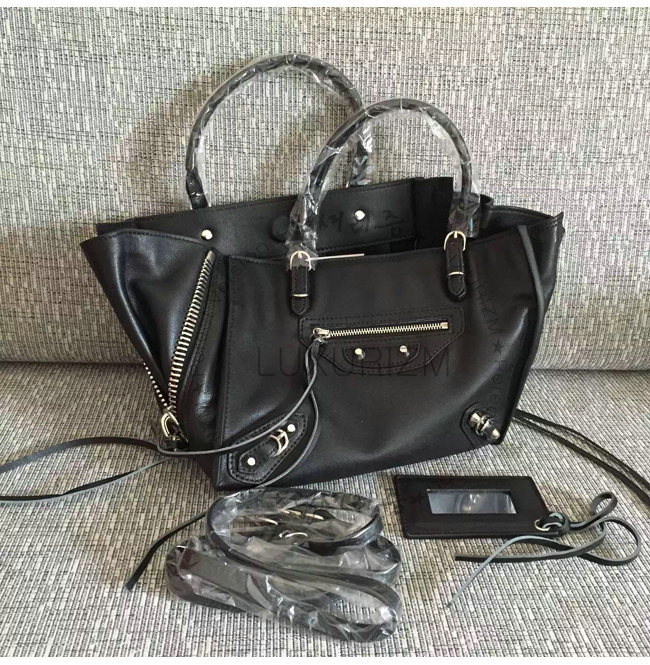 BALENCIAGA-1920 발렌시아가 빠삐에 미니 A4 지퍼 어라운드 크로스백 블랙