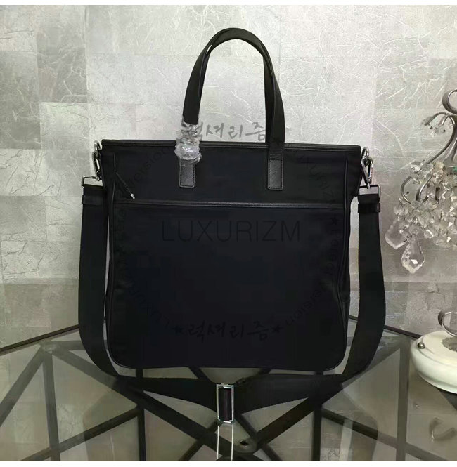 -사피아노 가죽 트림 및 핸들이 달린 나일론 토트백/폴리시드 스틸 하드웨어 블랙 티타늄 지퍼.