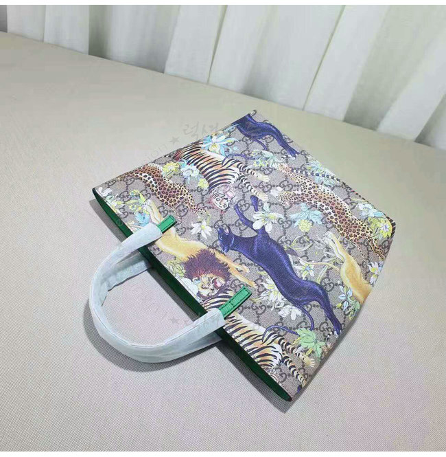 GUCCI-410812 8309 구찌 칠드런 GG수프림 캔버스 felines 프린트 토트 백 그린