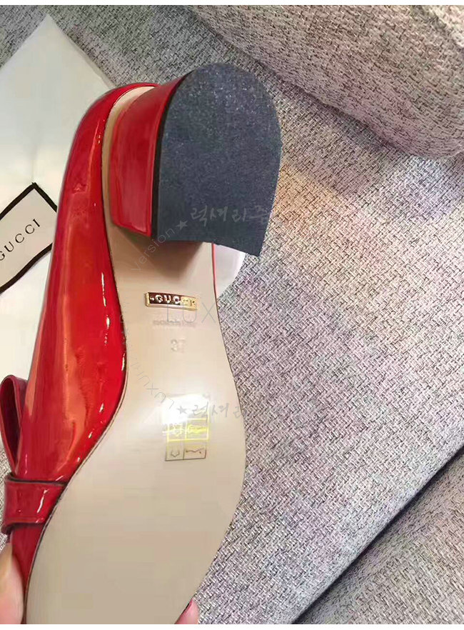 GUCCI-474510 6433 구찌 레드 페이던트 가죽 미드힐 펌프스 여성용