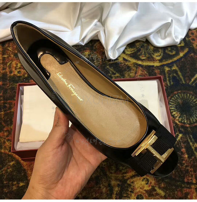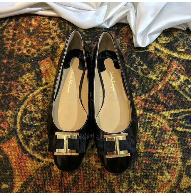 FERRAGAMO-01M670 페라가모 더블 보우 오나먼트 블랙 발레리나 여성용