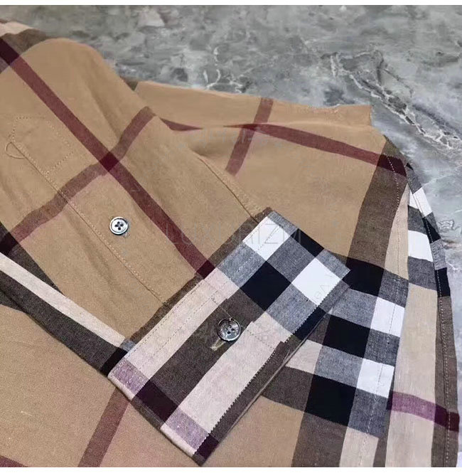 BURBERRY-40591281 버버리 카멜 체크 코튼 플란넬 셔츠 남성용