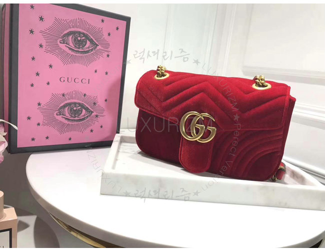 [스페셜오더]GUCCI-446744 6433 구찌 GG Marmont 마틀라세 미니 레드 벨벳 숄더백