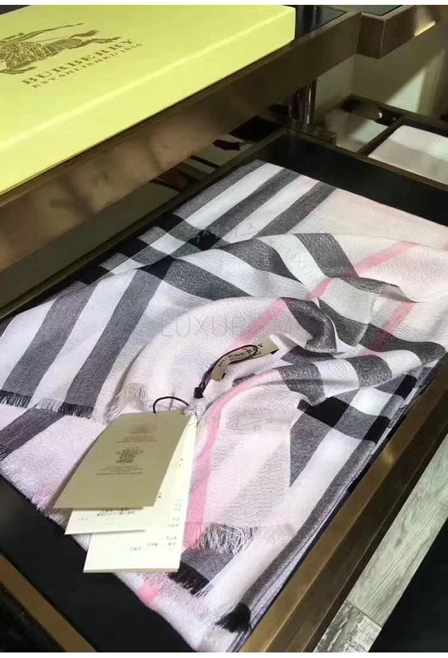 BURBERRY-40436271버버리 메탈릭 에쉬 로즈 체크 실크 울 스카프 여성용