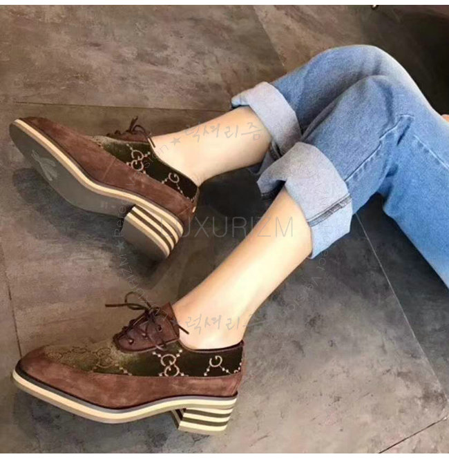 GUCCI-498106 2280 구찌 스웨이드 가죽 GG 벨벳 미드힐 레이스업