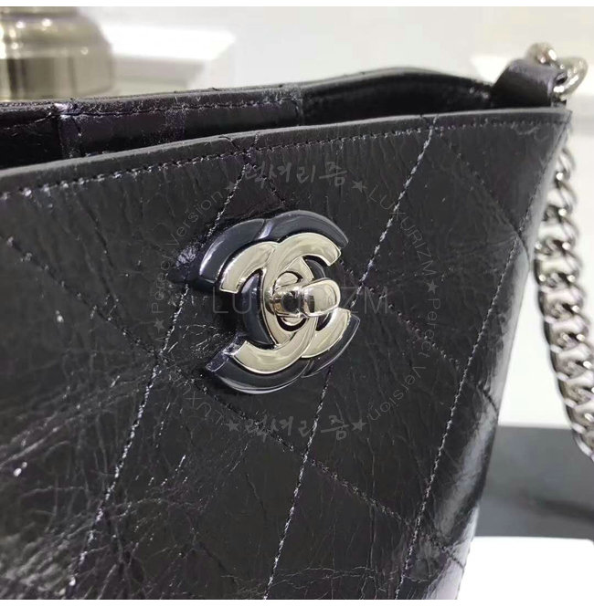 [스페셜오더]CHANEL-A57636 샤넬 크럼플드 카프스킨 레진 실버 메탈 블랙 버킷백