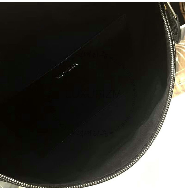 스트랩 내부 패치 포켓 정면과 뒷면에 지퍼 포켓 앞면에 양각 처리된 골드 발렌시아가 로고.