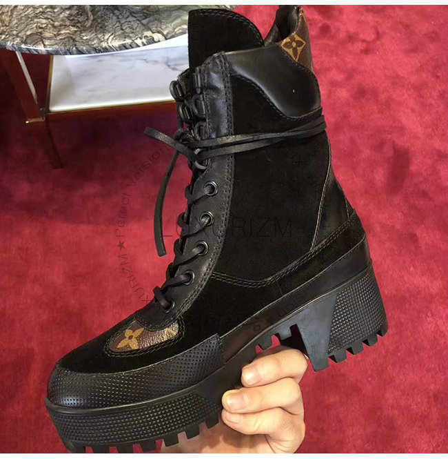 [스페셜오더]LOUIS VUITTON-1A4FQ1 루이비통 스웨이드 송아지 가죽 모노그램 디테일 로리엇 플랫폼 데저트 부츠 가격 : 320,000원