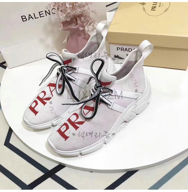 PRADA-1E344L 프라다 화이트 니트 페브릭 인타르시아 로고 스니커즈