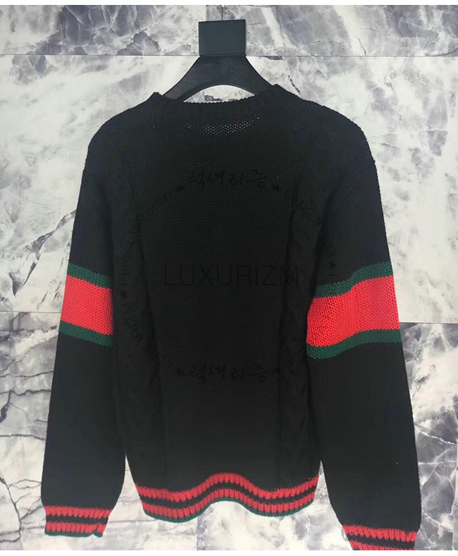 GUCCI-548115 1082 구찌 블랙 니트 울 Web 장식 스웨터