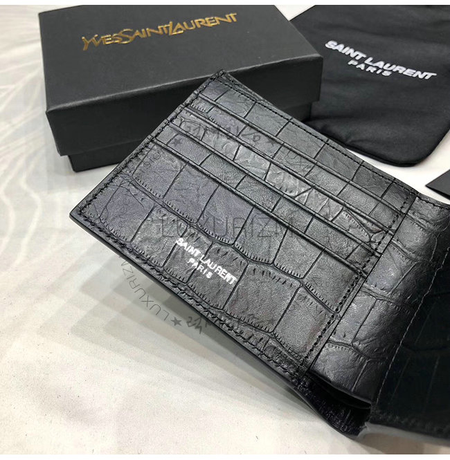 [스페셜오더]SAINT LAURENT-453276 생 로랑 블랙 크로커다일 무늬 쉽스킨 모노그램 생 로랑 이스트/웨스트 지갑