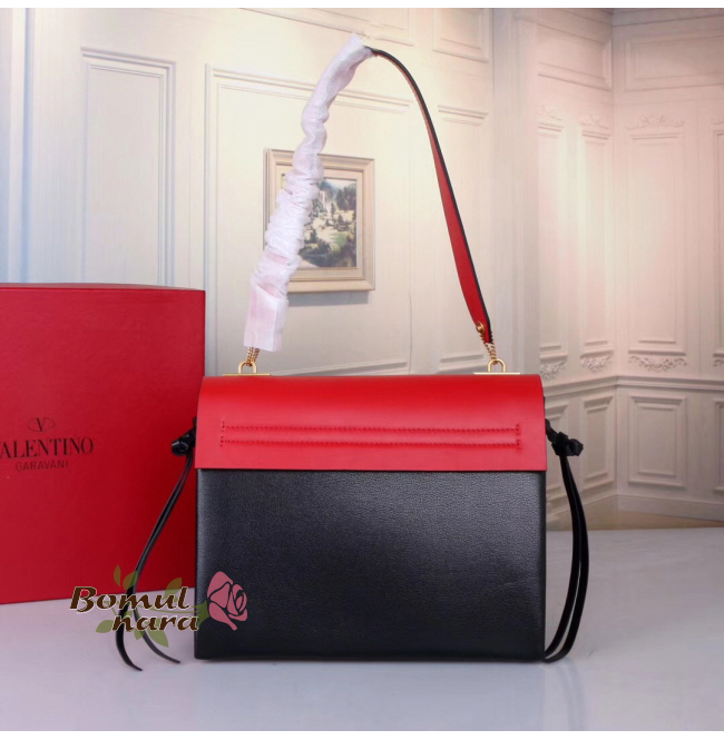 [스페셜오더]VALENTINO-RW0B0E 발렌티노 블랙/레드 미디엄 V링 숄더백