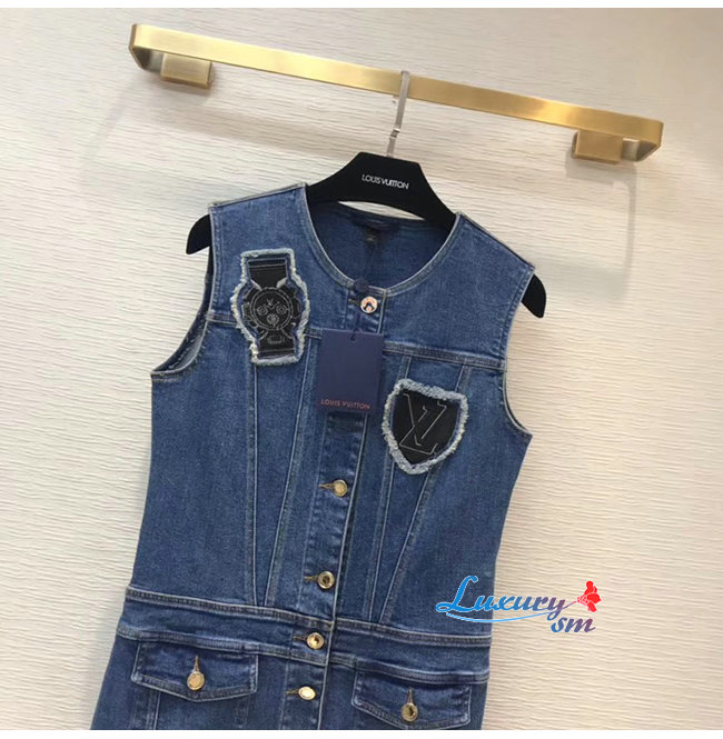LOUIS VUITTON-1A5JQD 루이비통 슬리브리스 A-라인 드레스 위드 엠브로이더드 패치