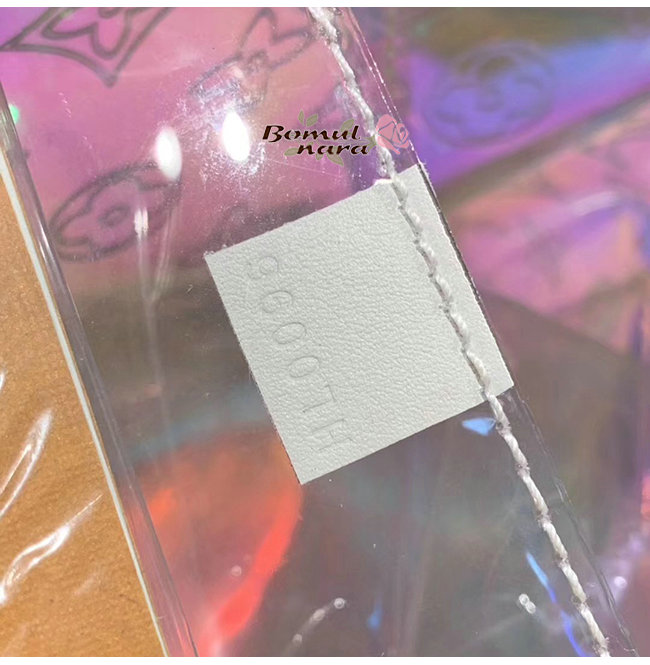 더한 모노그램이 돋보이는 강렬한 무지갯빛의 PVC 소재가