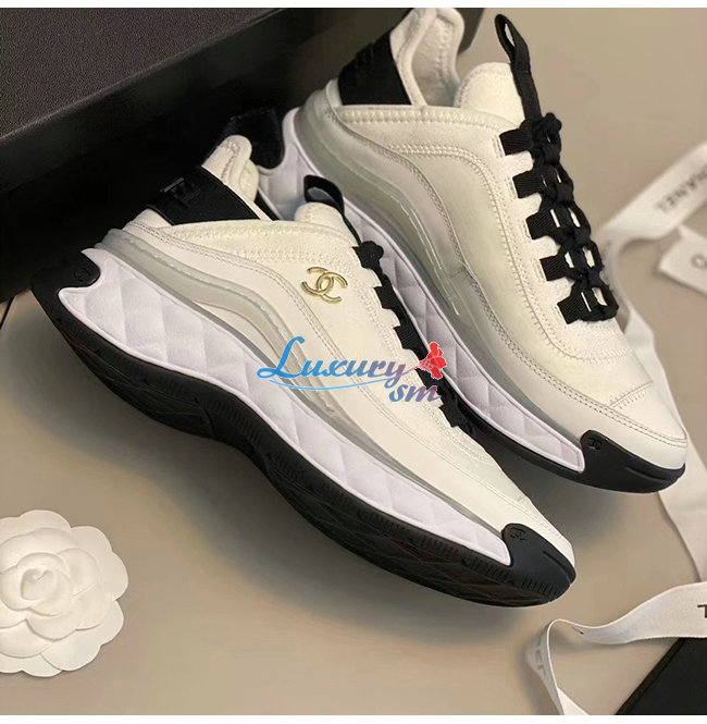 CHANEL-G35617 샤넬 화이트 벨벳 카프스킨 믹스드 파이버 스니커즈
