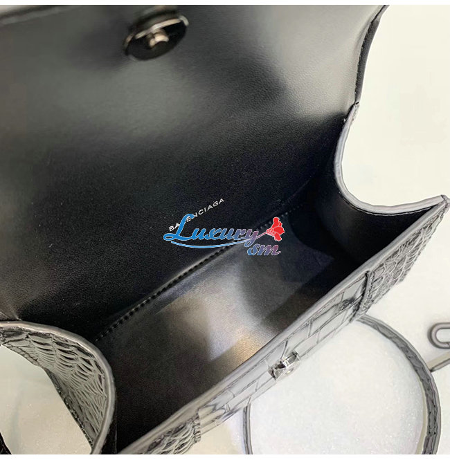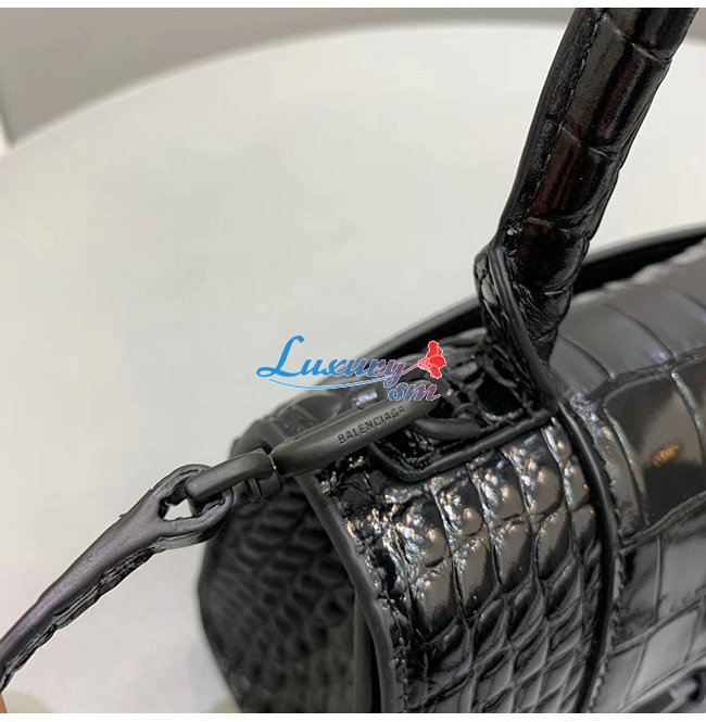[스페셜오더]BALENCIAGA-592833 발렌시아가 블랙 크로커다일 엠보싱 송아지 가죽 아워글래스 탑 핸들 백 XS
