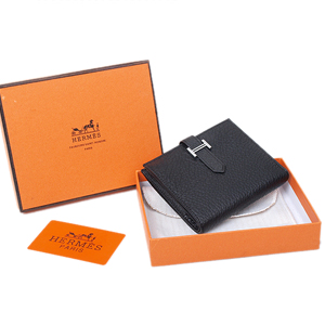 [스페셜오더] HERMES-은장 H 로고 베안 반지갑 블랙