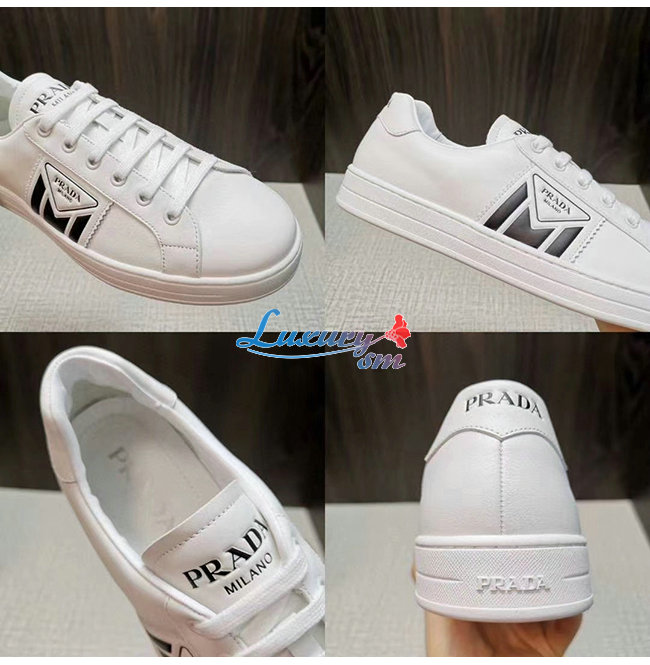 [스페셜오더]PRADA-4E3544 프라다 화이트/블랙 송아지 가죽 스크린 프린트 뉴 에비뉴 스니커즈