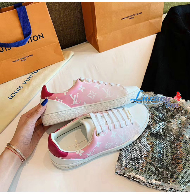 LOUIS VUITTON-1A87CE 루이비통 화이트/핑크 송아지 가죽 모노그램 디테일 프론트로우 스니커즈