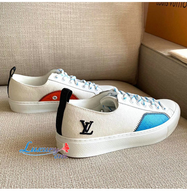 LOUIS VUITTON-1A7S8W 루이비통 화이트 텍스타일 모노그램 디테일 타투 스니커즈 남여공용