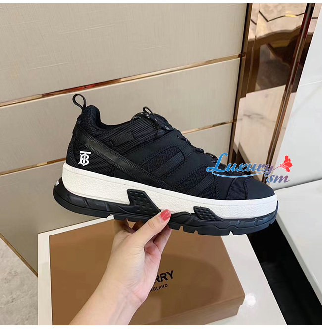 BURBERRY-80173791 버버리 블랙 메시 누벅 유니언 스니커즈