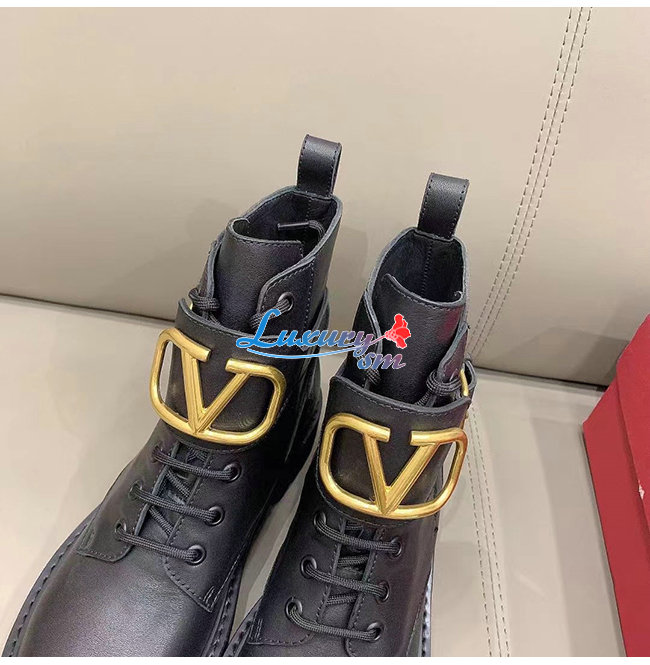 VALENTINO-ZW2S0Q 발렌티노 블랙 송아지 가죽 VLOGO SIGNATURE 컴뱃 부츠 여성용