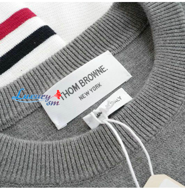 THOM BROWNE-09142 톰 브라운 그레이 니트 코튼 스트라이프 장식 스웨터 남여공용