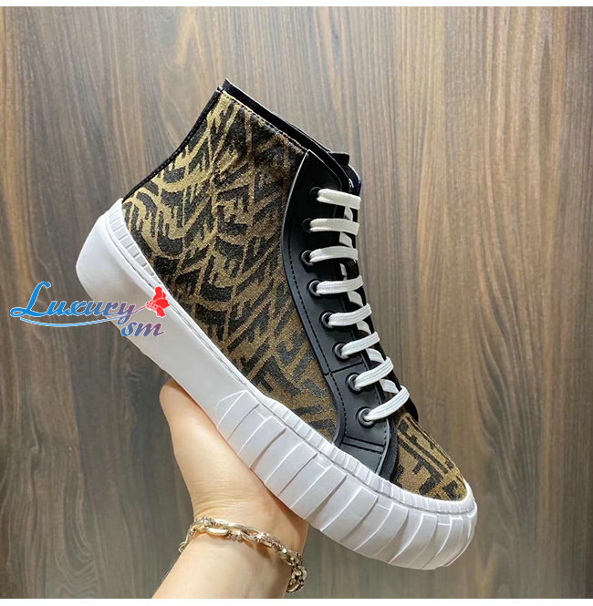 FENDI-7E1424 펜디 브라운 패브릭 더블 F 하이탑 스니커즈 남성용