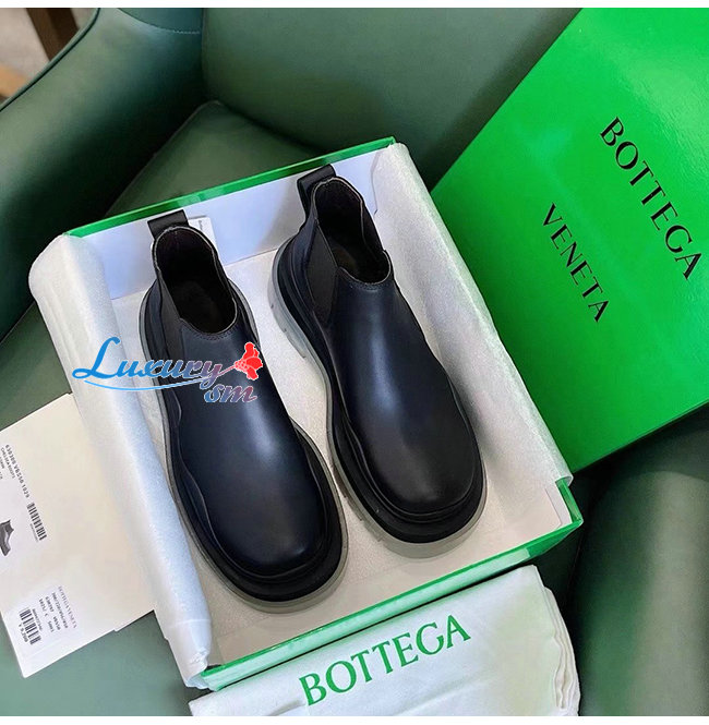 BOTTEGA VENETA-630281 보테가 베네타 블랙 송아지 가죽 타이어 크롭 첼시 부츠 남여공용