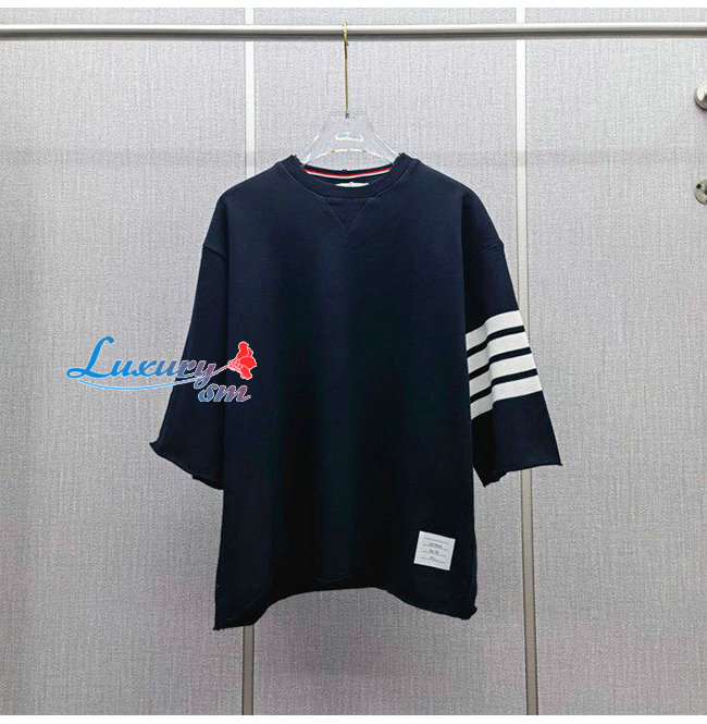 THOM BROW**-040114 톰 브라운 네이비 스트라이프 장식 티셔츠 남성용