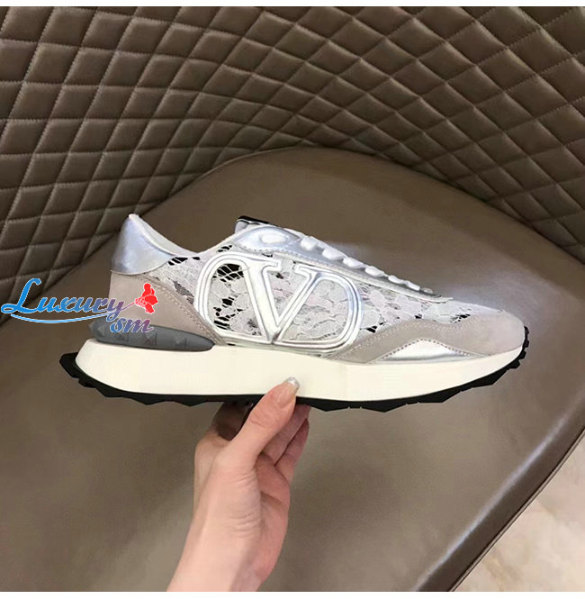 VALENTI**-1W2S0DY 발렌티노 실버 레이스 메쉬 레이스러너 스니커즈 남여공용