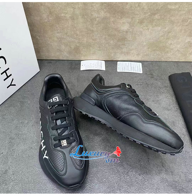 GIVENCHY-BH005CH 지방시 블랙 퍼포레이티드 가죽 GIV 러너 스니커즈 남성용