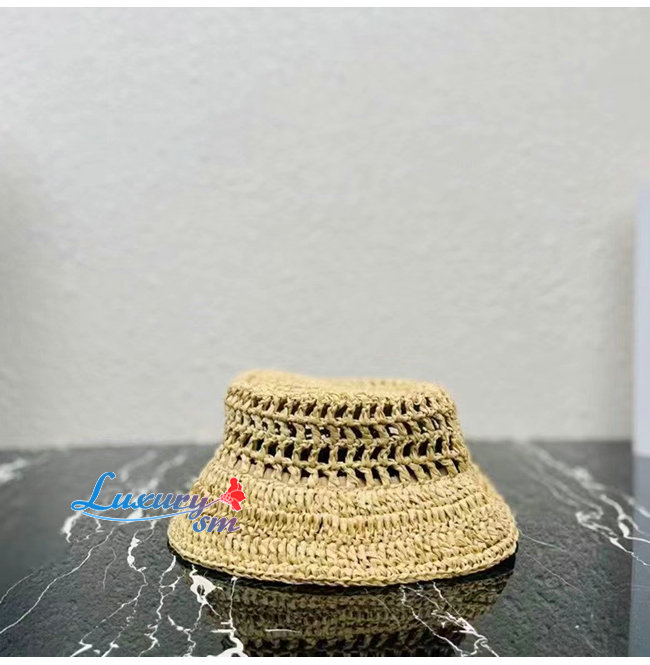 PRADA-1HC137 프라다 베이지 라피아 버킷 햇 여성용