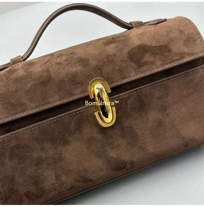 [스페셜오더]Savette-사베트 내추럴 스웨이드 시메트리 턴락 포쉐트 백 22 가격 : 400,000원