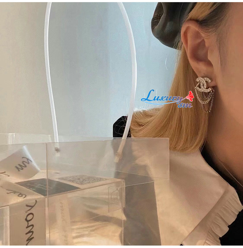 CHANEL-7111 샤넬 실버 크리스탈 체인 CC 로고 귀걸이