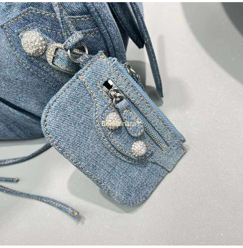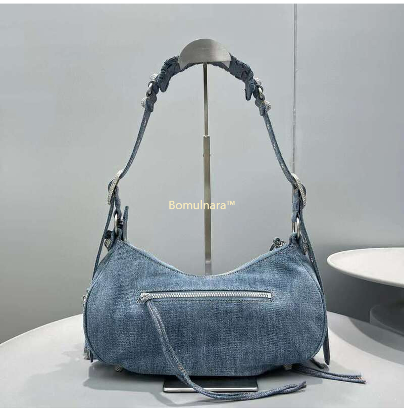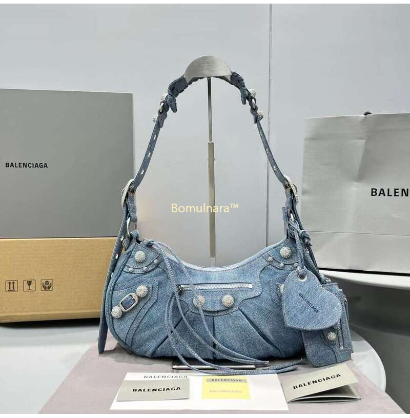 [스페셜오더]BALENCIAGA-671307 발렌시아가 블루 데님 라인스톤 LE CAGOLE 스몰 숄더백