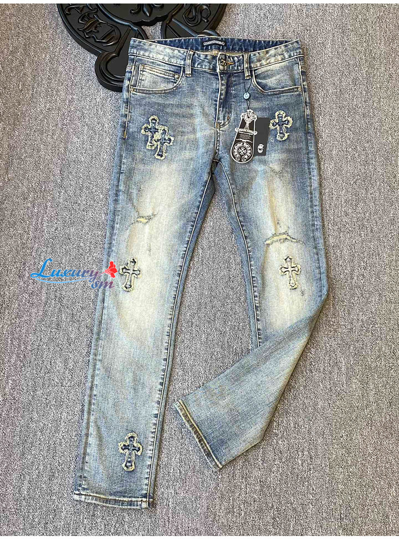 CHROMEHEARTS-02264 크롬하츠 블루 십자가 장식 청바지 남성용
