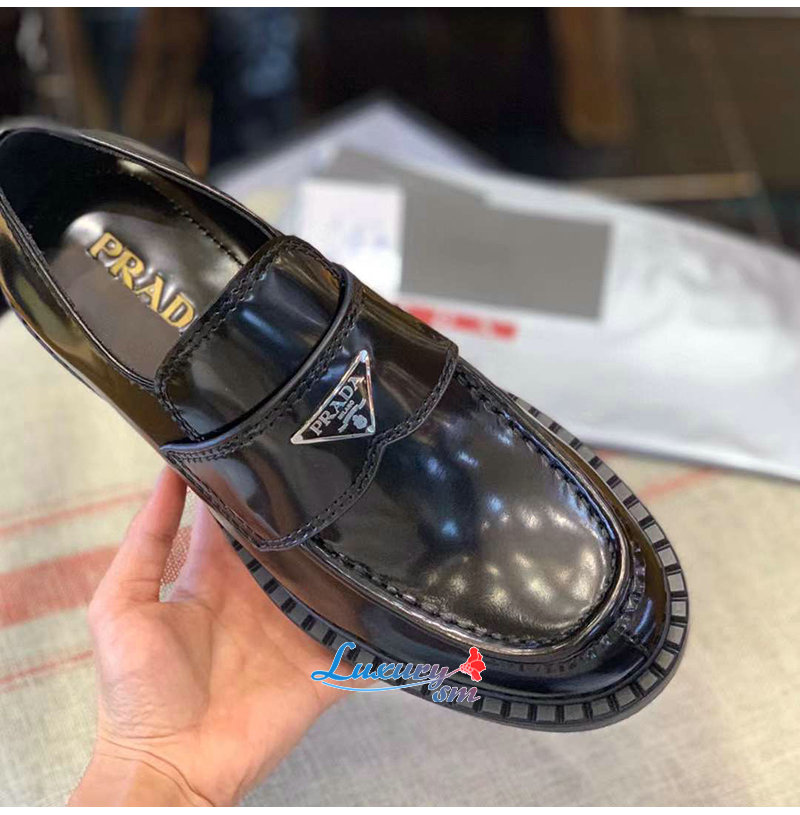 PRADA-2DE127 프라다 블랙 초콜릿 블러시드 가죽 로퍼 남성용