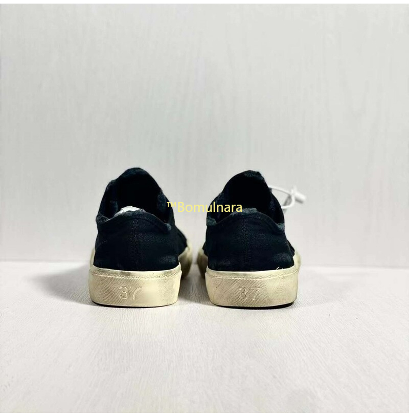 BALENCIAGA-688754 발렌시아가 블랙 디스트로이드 코튼 앤 화이트 러버 Paris Low Top 스니커즈