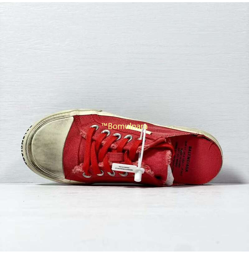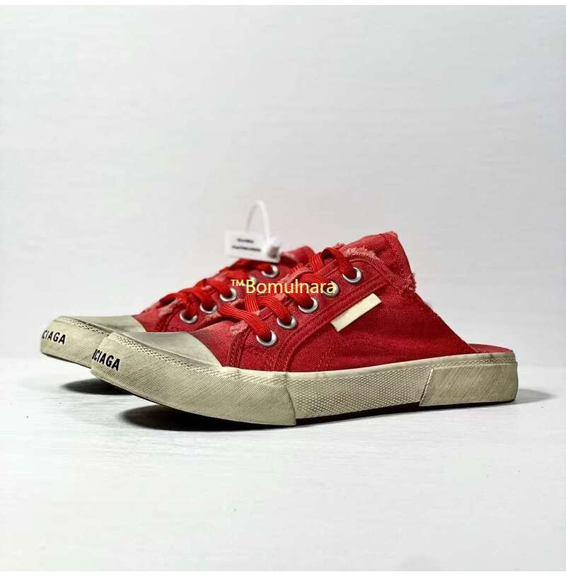 BALENCIAGA-693953 발렌시아가 레드 디스트로이드 코튼 앤 화이트 러버 Paris 스니커즈 뮬