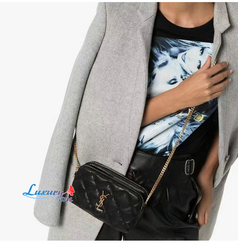 YSL 이니셜로 장식된 다이아몬드 퀼팅 더