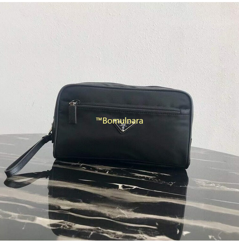 [스페셜오더]PRADA-2NE013 프라다 블랙 리-나일론 트라이 앵글 로고 지퍼 클러치 백
